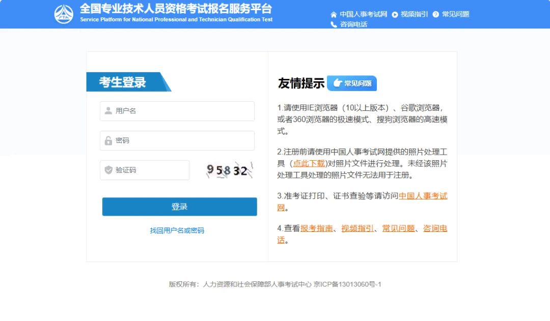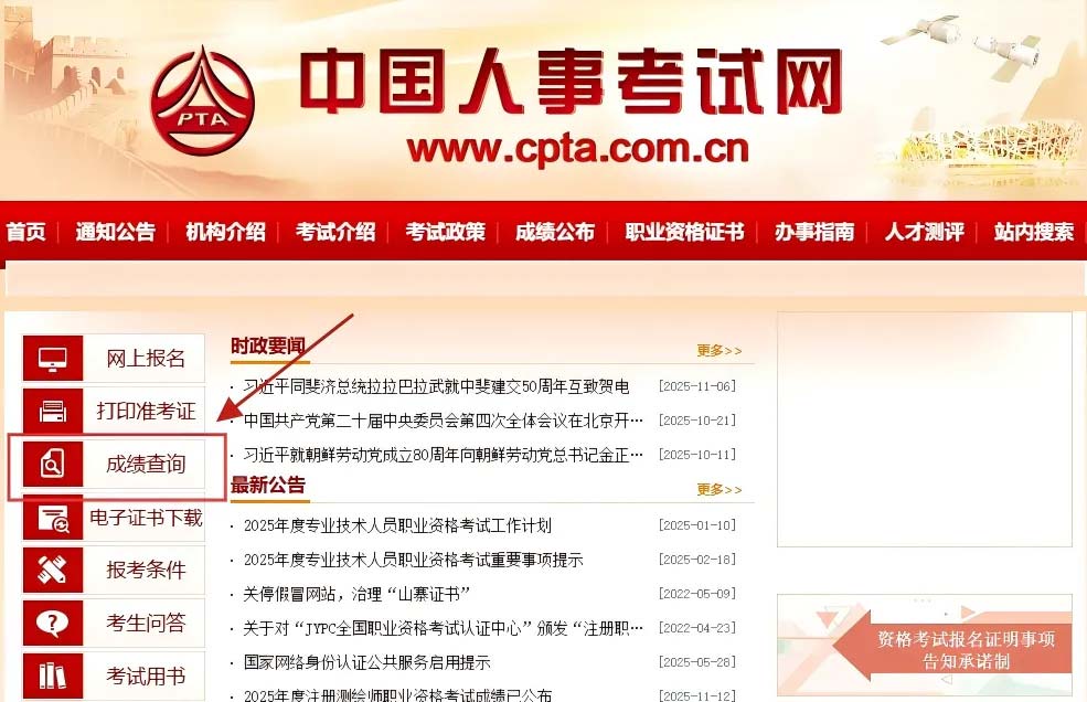 成绩公布后,考生可以登录中国人事考试网通过成绩查询功能进行考试成绩查询;输入用户名和密码登录成绩查询系统(见下图)。