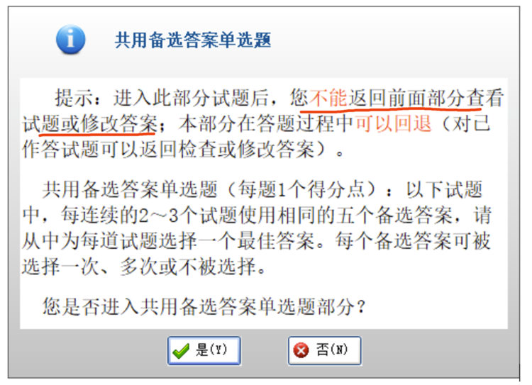 人机考试和纸笔考试最大的不同,就是:人机考试中不同题型不可回退!