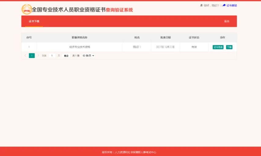 完成上述操作后跳转到以下页面,选择持证人查询下载,登录“全国专业技术人员职业资格证书查询验证系统(证书下载)”