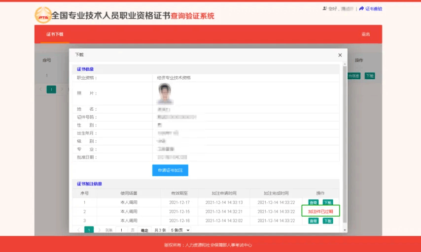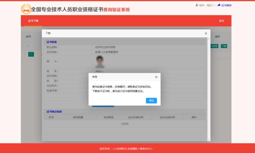 点击右侧的【下载】按钮,进入电子证书加注、下载页面。