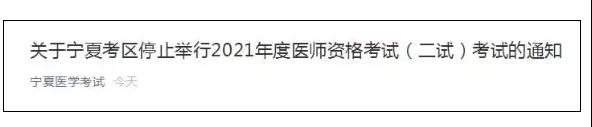 当前,全区新冠肺炎疫情防控形势依然严峻复杂,为确保广大考生和考务人员的健康安全,经宁夏医师资格考试领导小组综合研判并经国家医学考试中心同意,决定取消原定于2021年11月13日、14日举行的宁夏2021年医师资格考试二试。